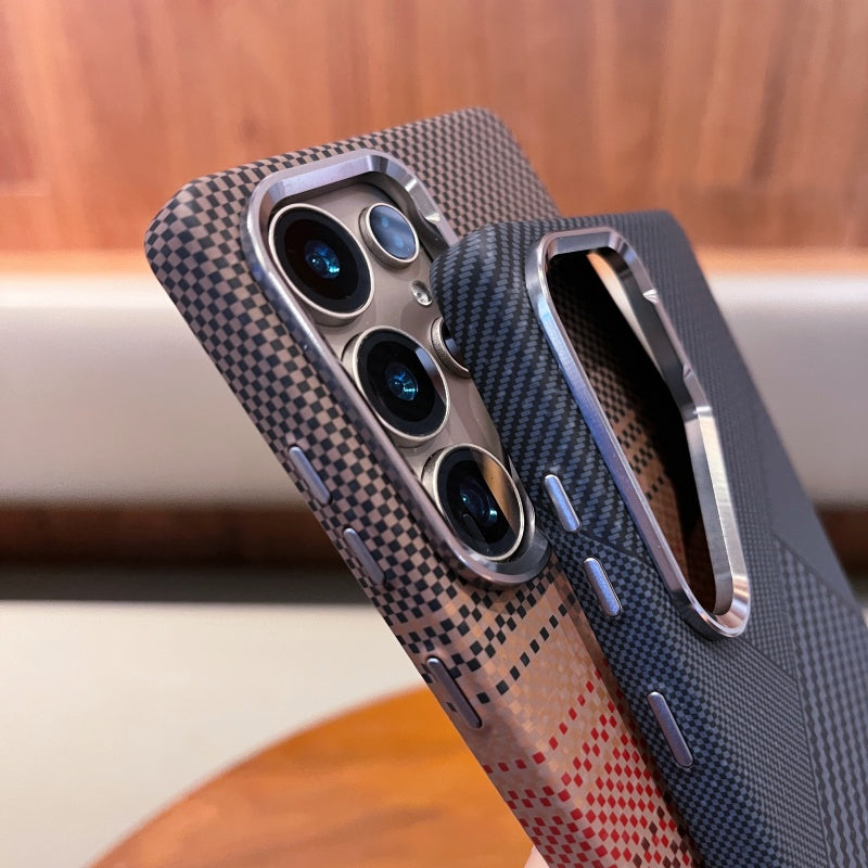 New Carbon Fiber Texture Magnetic Phone Case With Metal Lens Frame Slim Matte Hard PC Protective Back Cover